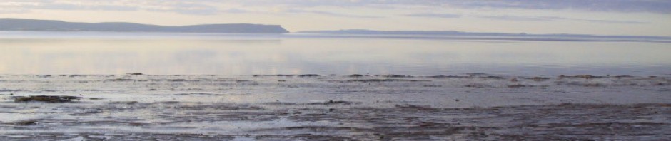 Earth scientists categorize tide ranges as micro-(<2m), meso- (2-4m), macro (4-6m) or hypertidal (>6m). Minas Basin and only a handful of other estuaries in the world are a category of their own with their extreme tide ranges. The only estuary that bears any comparison to Minas Basin is Knik Arm in Alaska, which has a 10 m average tide range. Like Nova Scotia, that area was heavily glaciated during the Pleistocene and the glaciers left thick packages of sediments (tills, eskers, drumlines etc.). Also, Knik Arm is routinely covered in winter ice.