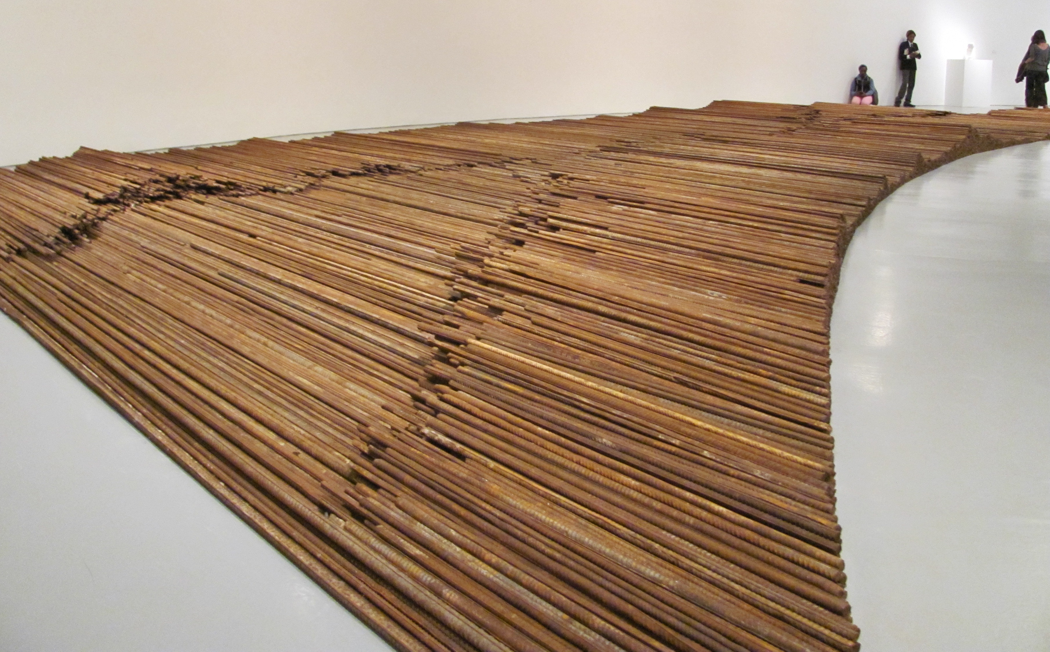 Another work addressing the same corruption problem consists of an enormous pile of elegantly and minimalistically arranged rebar (photo below). Every single one of these rebar pieces was salvaged from collapsed buildings, brought to a recycling place and straightened out for the artist. Together, they form a monstrous monument to corruption and needlessly lost lives.