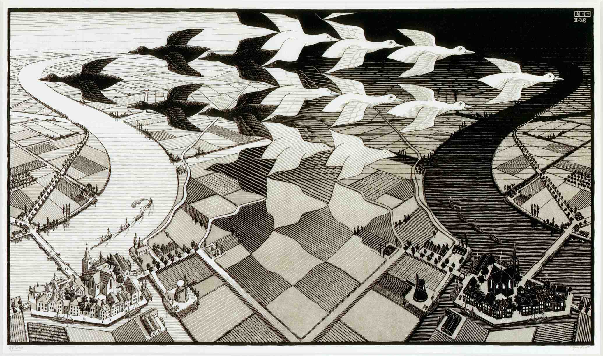 M.C. Escher: ‘Day and Night’ – possibly inspired by the Eem River valley landscape