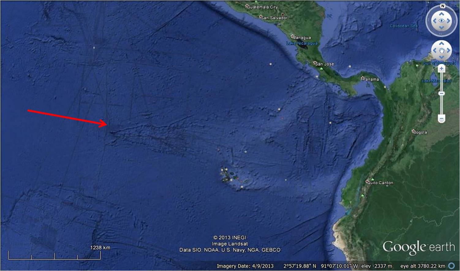 Location of the “Hess Deep” spreading centre in the eastern equatorial Pacific Ocean.