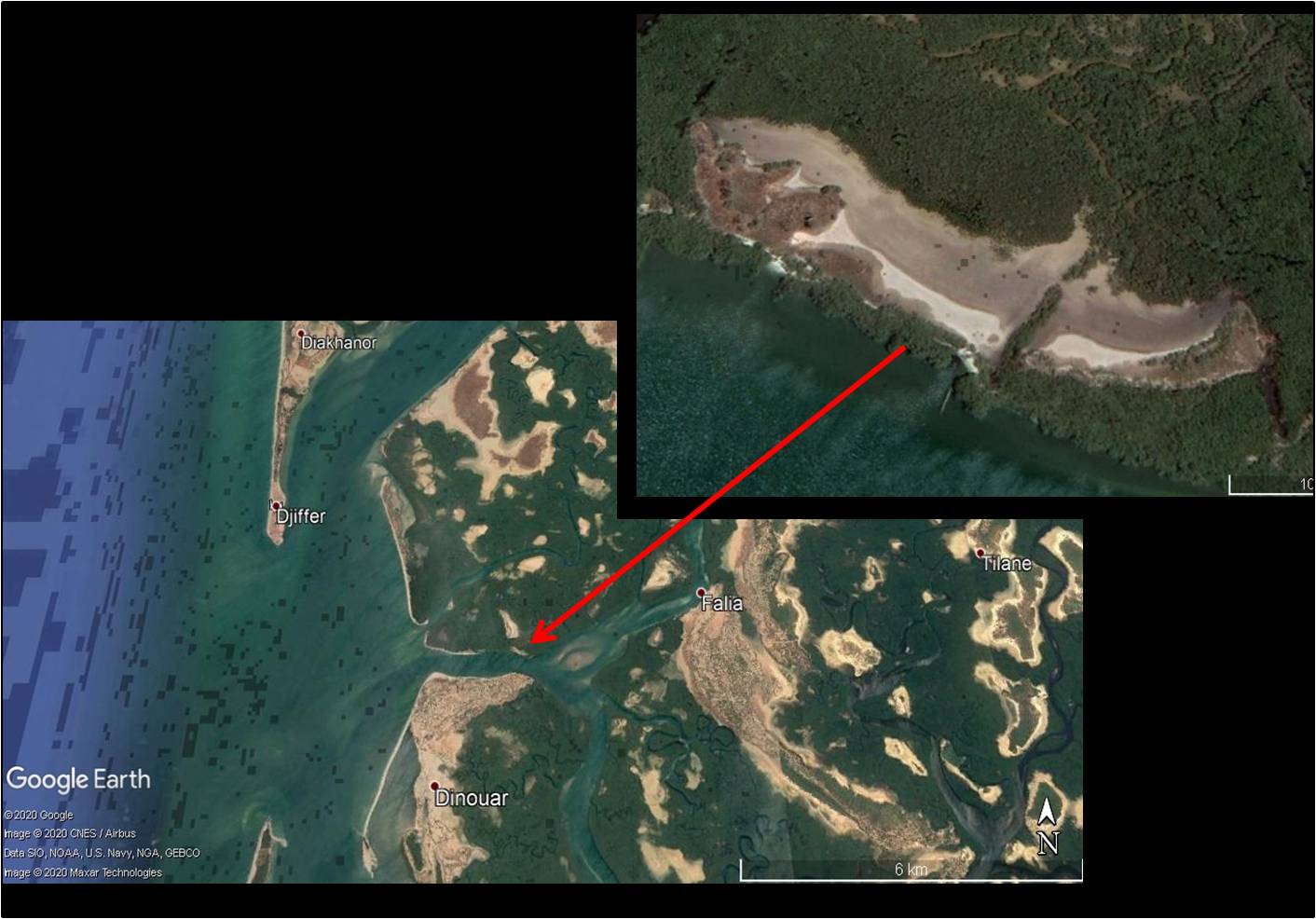 Sine Saloum oyster midden Google Earth